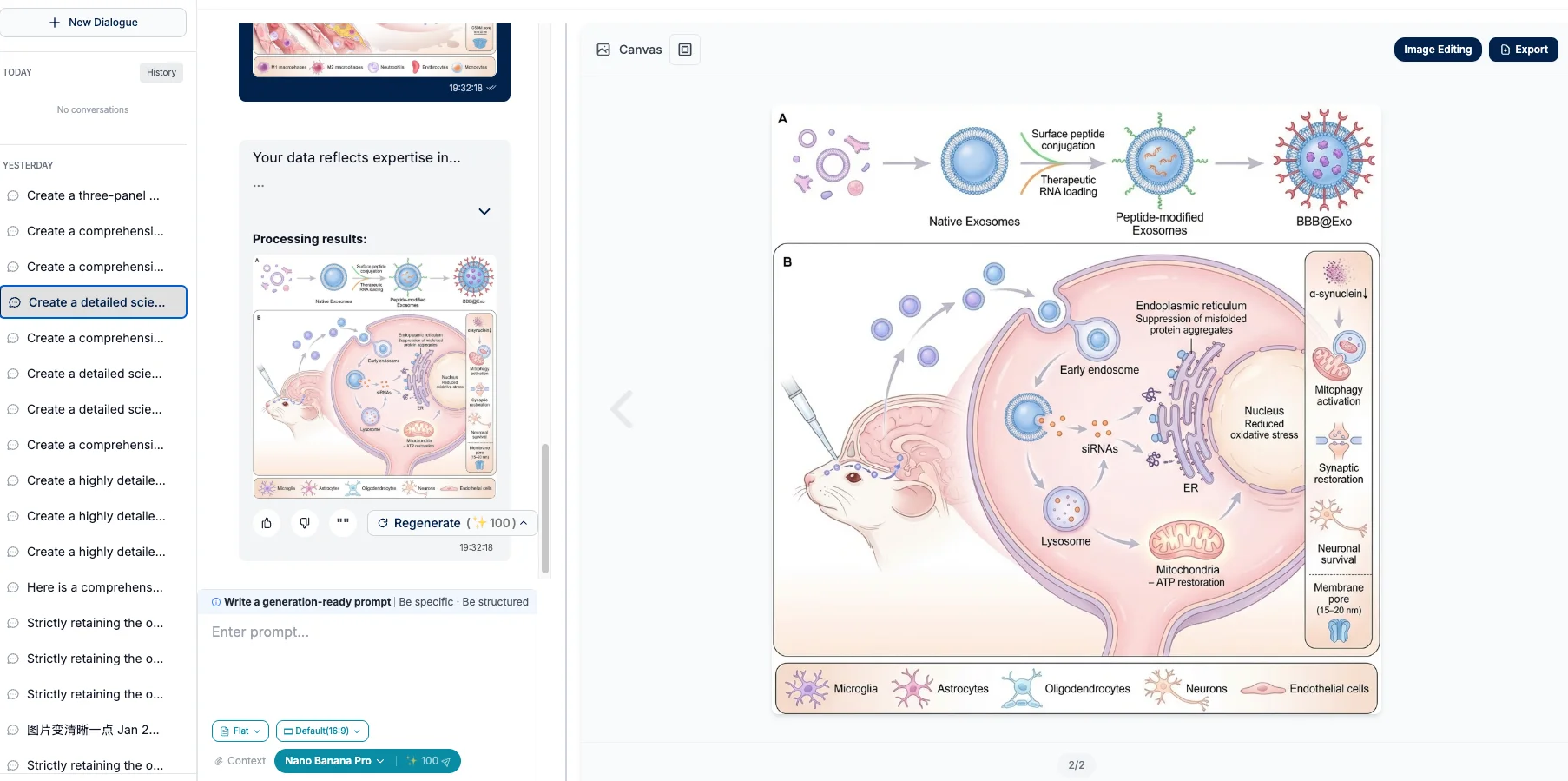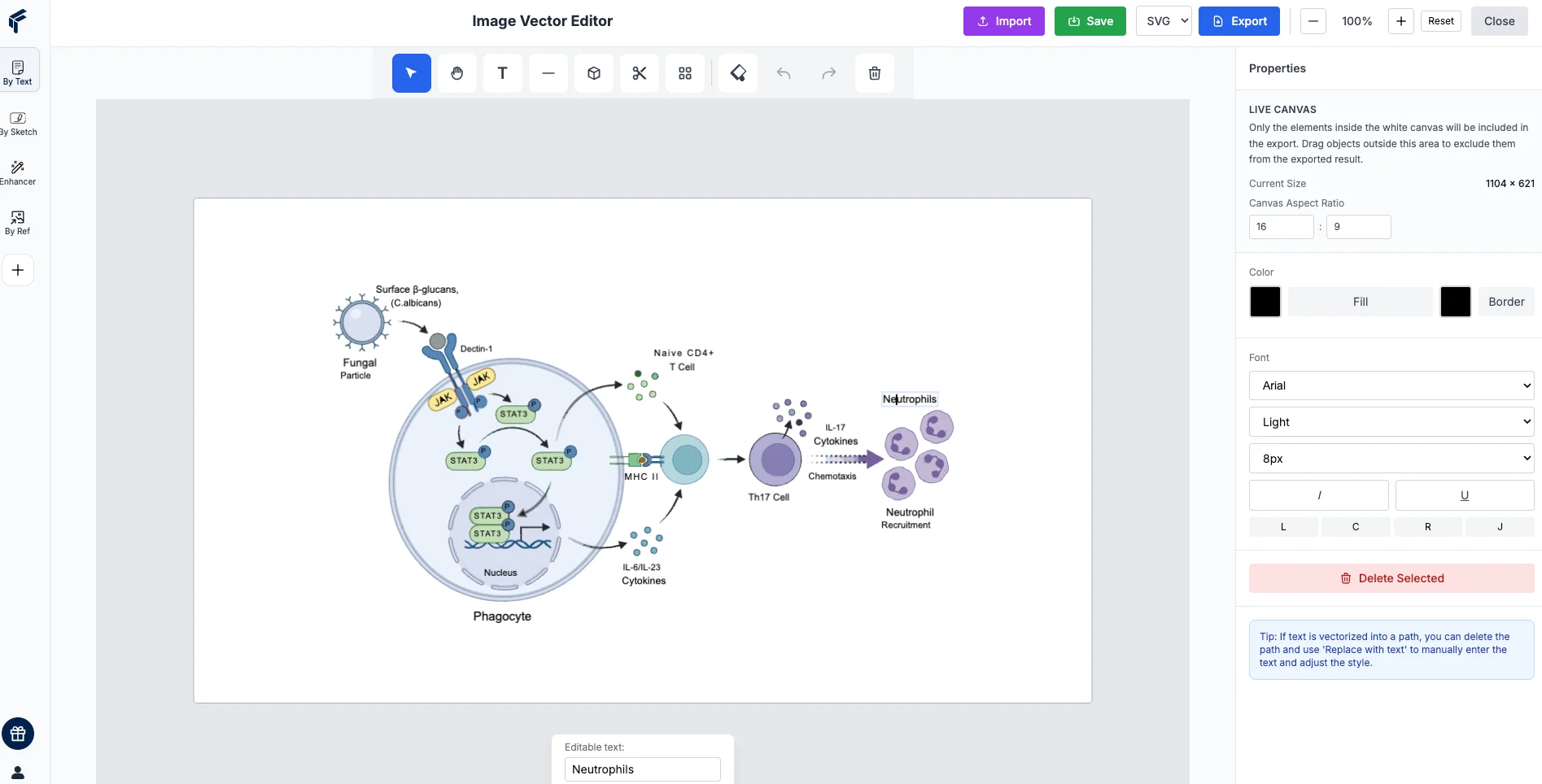 Crucial Step: I was able to click on specific text labels that the AI had misspelled and type in the correct scientific terms. I also adjusted the color scheme to match my previous figures.